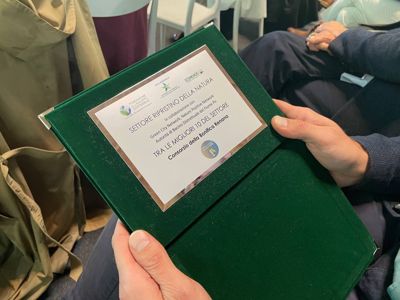 Il nostro progetto è stato riconosciuto meritevole nell’ambito della categoria “Ripristino della natura” per le attività di “conservazione e ripristino degli ecosistemi acquatici e ripariali con tecniche di sfalcio selettivo, rimodellazione delle sponde e creazione di habitat umidi lungo i canali di bonifica del bacino idrografico del fiume Reno, tra Bologna e Ferrara connessi a siti della Rete Natura 2000”.